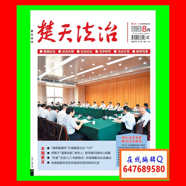 《楚天法治》杂志融权威性、理论性、指导性、现实性、探讨性和实践性于一体,以“导向正、形式新、内容活、服务优”为编辑方针;以关注社情民生服务百姓,写实情,忠实履行新闻媒体作为党和政府的喉舌、民众代言人的职责为办刊宗旨,为法治工作提供信息服务。本刊为《中国核心期刊(遴选)数据库》全文收录期刊,被转载率及学术价值高,刊发文章符合评定中、高级职称要求,深受广大专家、学者及作者、读者的好评。欢迎海内外广大学者、法治工作者及科研教职人员等各界人士赐稿,并提出宝贵意见,以便提高我们的办刊质量。