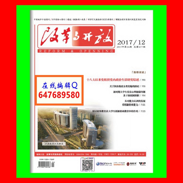 《改革与开放》杂志是一份具有全国影响,融理论性、政策性、操作性于一体的综合经济刊物,连续三届被评为全国城市十佳经济期刊,为中宣部指定的全国百家期刊阅览室赠建单位。《改革与开放》杂志收录情况\影响因子:全国公开发行的社科类优秀期刊,增建全国百家期刊阅览室指定刊物,中国核心期刊(遴选)数据库期刊,中国知网CNKI全文数据库收录期刊,中国龙源期刊群数据库全文上网期刊,中国学术期刊综合评价数据库来源期刊。